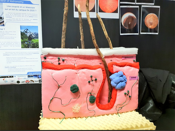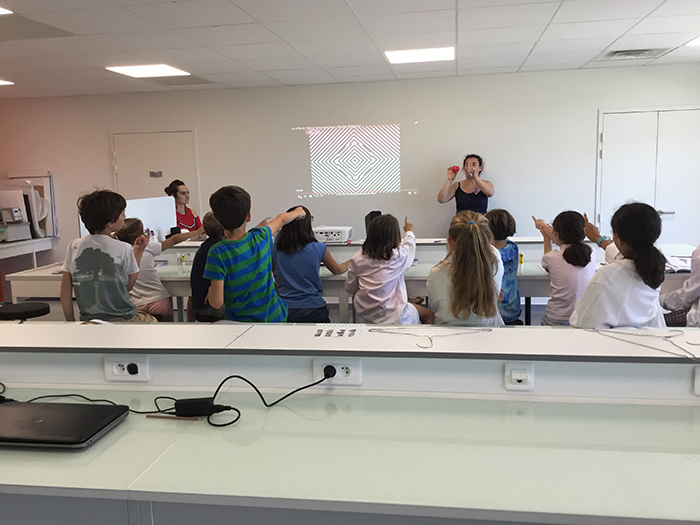 Comment fonctionnent les yeux ? Pourquoi a-t-on deux yeux ? Quelles sont les zones les plus sensibles du corps humain ? Une coupe de peau humaine ça ressemble à quoi ? Le son, une histoire de vibrations ? Comment protéger nos oreilles ? Les ateliers proposés ont permis de répondre à toutes ces questions au profit de 81 enfants du CE2 à la sixième.