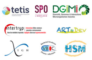Session 2 : Julie PAGNIEZ, Ingénieure d’Etudes IRD sur les maladies parasitaires tropicales au Laboratoire Interactions hôtes-vecteurs-parasites-encironnements dans les maladies tropicales négligées dues aux trypanosomatidés, Anne-Sophie GOSSELIN GRENET, Professeure de l’Université de Montpellier en virologie des virus d’insectes au Laboratoire Diversité, Génomes et Interactions Microorganismes, Insectes, Elodie FERNANDEZ, Ingénieure de Recherche INRAE en calcul scientifique au Laboratoire Territoires Environnement Télédetection, Information Spaciale, Marina HERY, Maitresse de Conférence de l’Université de Montpellier en Ecotoxicologie Microbienne au Laboratoire Hydrosciences de Montpellier,