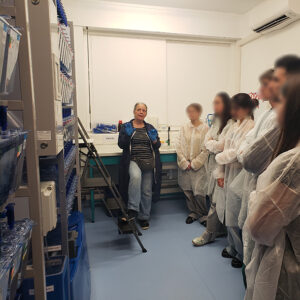 Avec Nicolas Cubédo, Ingénieur d’Etudes de l’Universite de Montpellier, et Catherine Gonzalez, Ingénieure d’Etudes CNRS du laboratoire voisin LPHI pour donner un coup de main, les groupes ont visité une animalerie de poisson-zèbre et découvert toutes les précautions prises pour le bien-être de ces petits animaux.