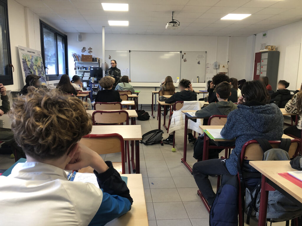 Toujours à Juvignac mais cette fois-ci au collège, 24 élèves de 4è ont reçu pour 2 séances de speed-meetings : Soumaya Turpault, Ingénieure d’Étude CNRS au Centre de Recherches en Biologie Cellulaire de Montpellier, Karine Loulier, Chercheuse et Cheffe d’équipe Inserm à l’Institut des Neurosciences de Montpellier, Adèle Marill, Doctorante à l’Université de Montpellier et à l’Institut d’Électronique et des Systèmes, et Léa Vuiart, Doctorante à l’Université de Montpellier, à l’Institut d’Électronique et des Systèmes et à l’Institut de Génétique Moléculaire de Montpellier. Merci à Luce Watremez, professeure de SVT.
